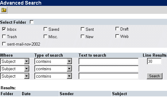 | Results | Displays all of the messages that matched the search terms, when the "Search" button is pressed. |